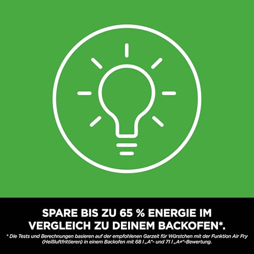 *Tests und Berechnungen basierend auf der empfohlenen Garzeit für Würstchen, unter Verwendung der Air-Fry-Funktion im Vergleich zu herkömmlichen Öfen.