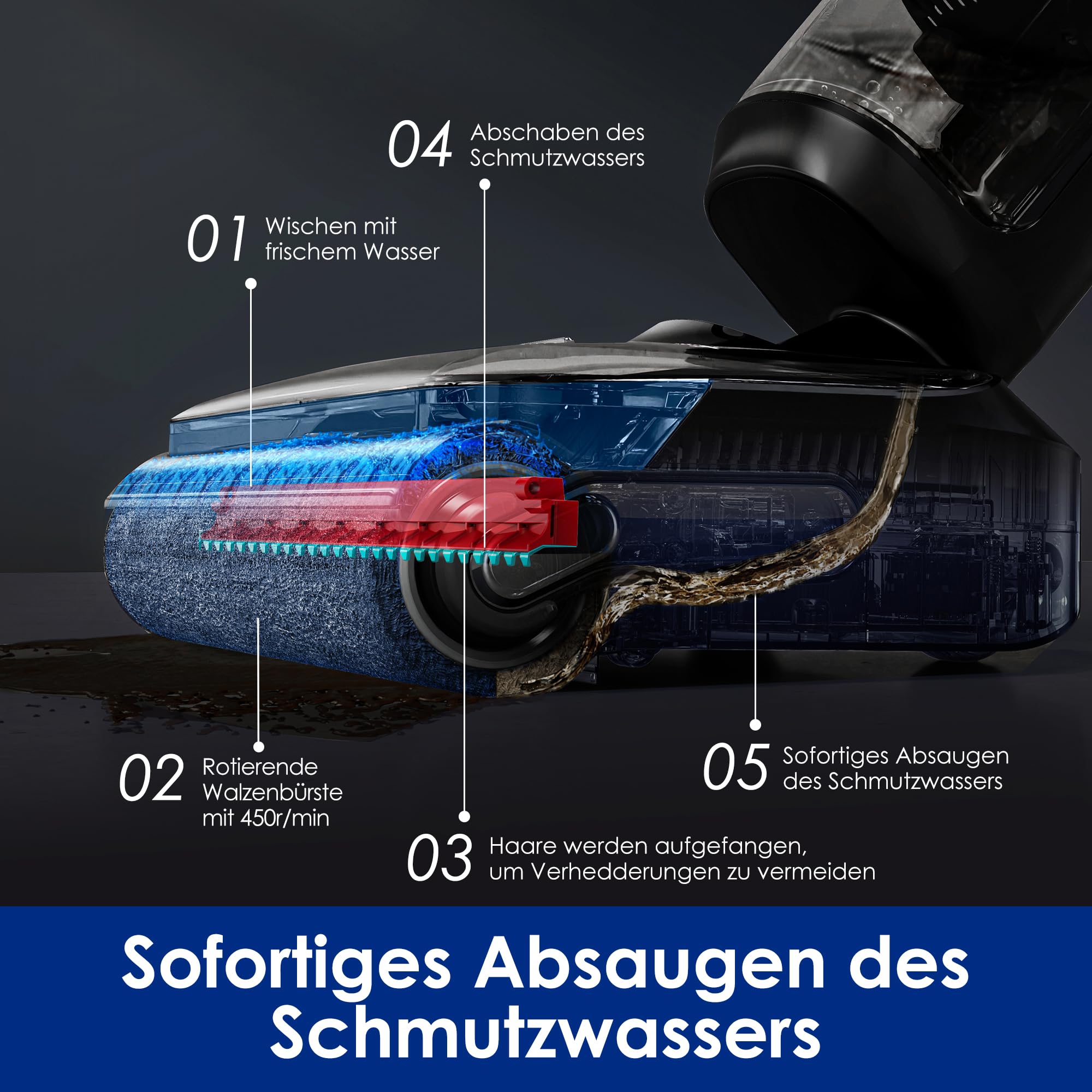 - DualBlock Anti-Verwicklungs-Design für Saugwischer: Die doppelschichtigen Schaber verhindern das Verheddern und Verstopfen von Haaren, indem sie die Haare mit einem Kammschaber einfangen und schmutziges Wasser und Haare mit einem geraden Schaber wegwischen.