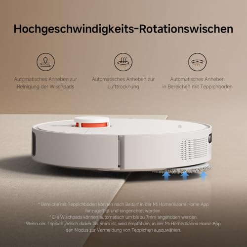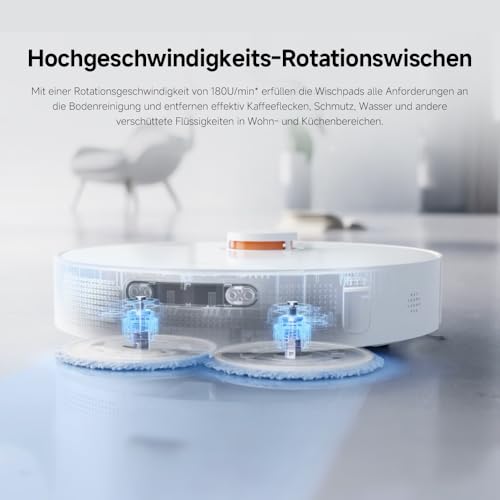 - [Intelligente Xiaomi Home App-Steuerung] Zeitschaltung und Automatisierung von Reinigungsprozessen via der smarten Xiaomi Home App. Wahl zwischen 4 verschiedenen Reinigungsmodi (z.B. zuerst saugen, dann wischen), einstellen von No-Go-Zonen und genaue Programmierung für alle Räume